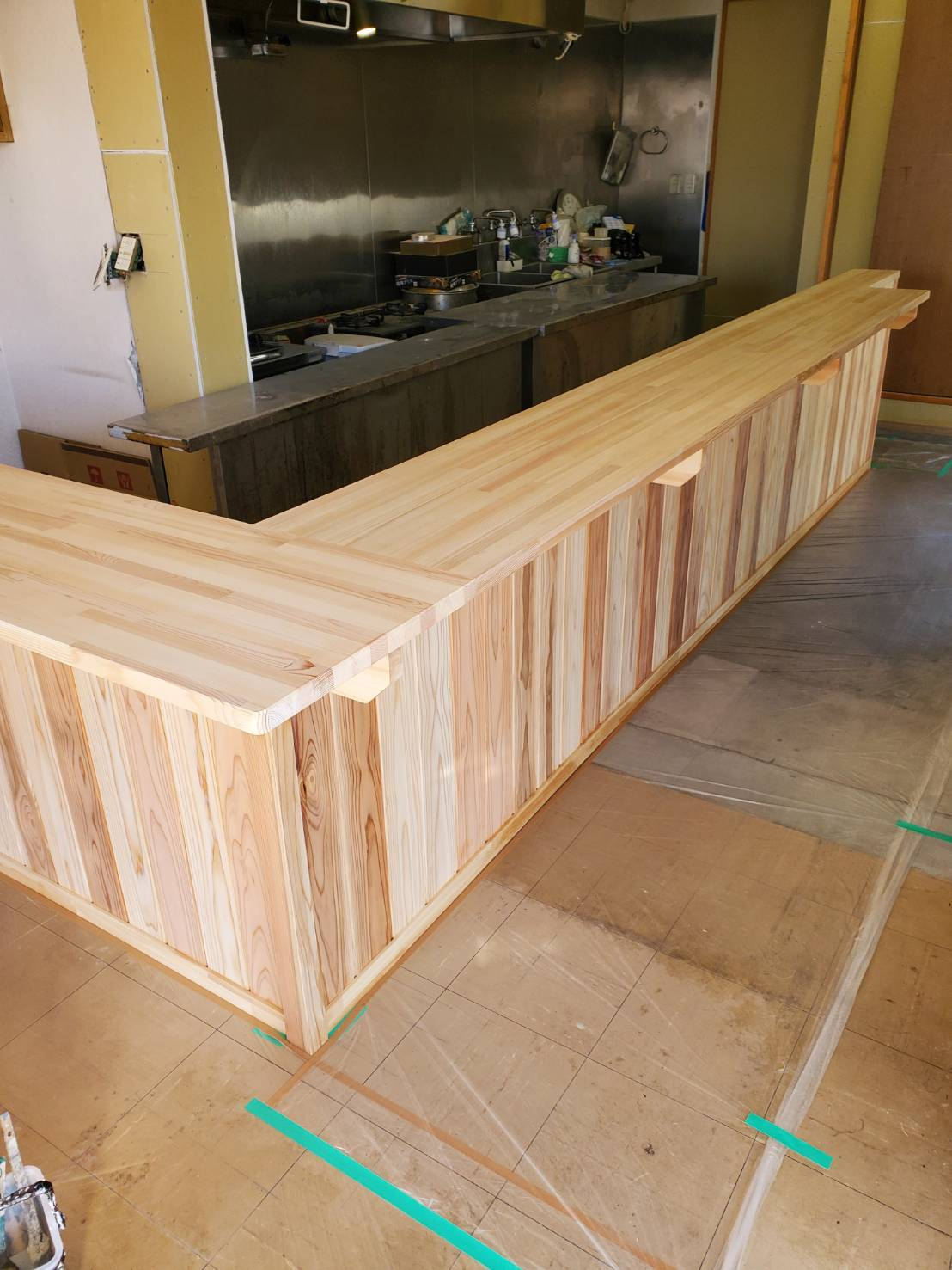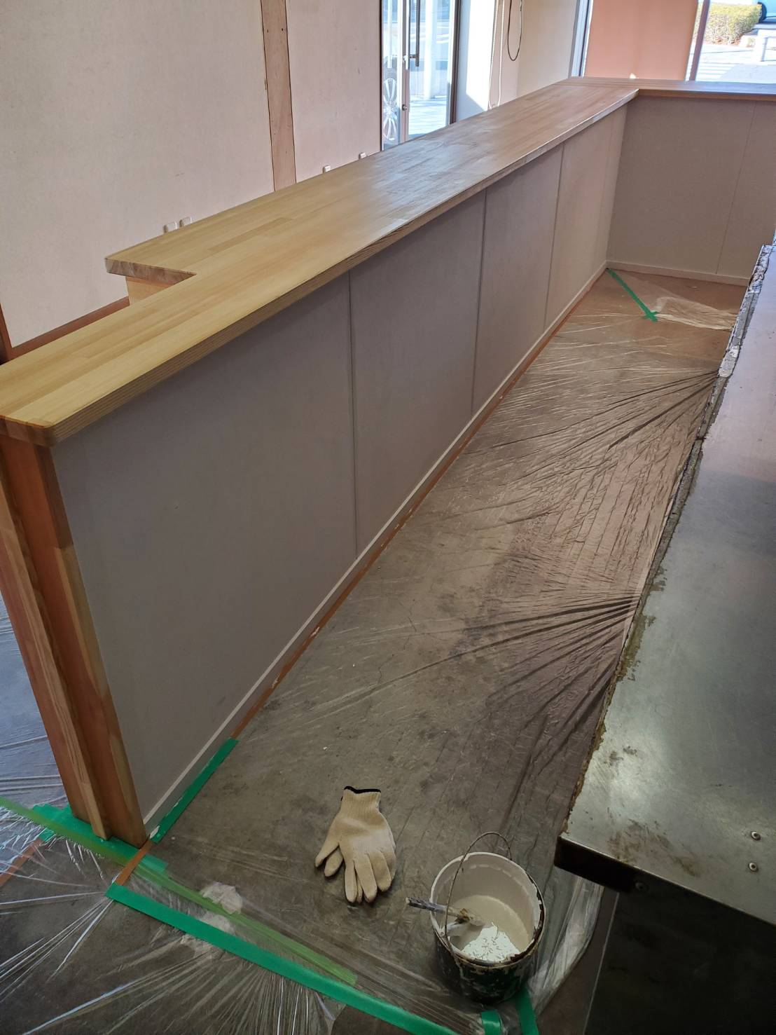 茨城県筑西市 飲食店店舗 木製カウンター クリヤー仕上げ