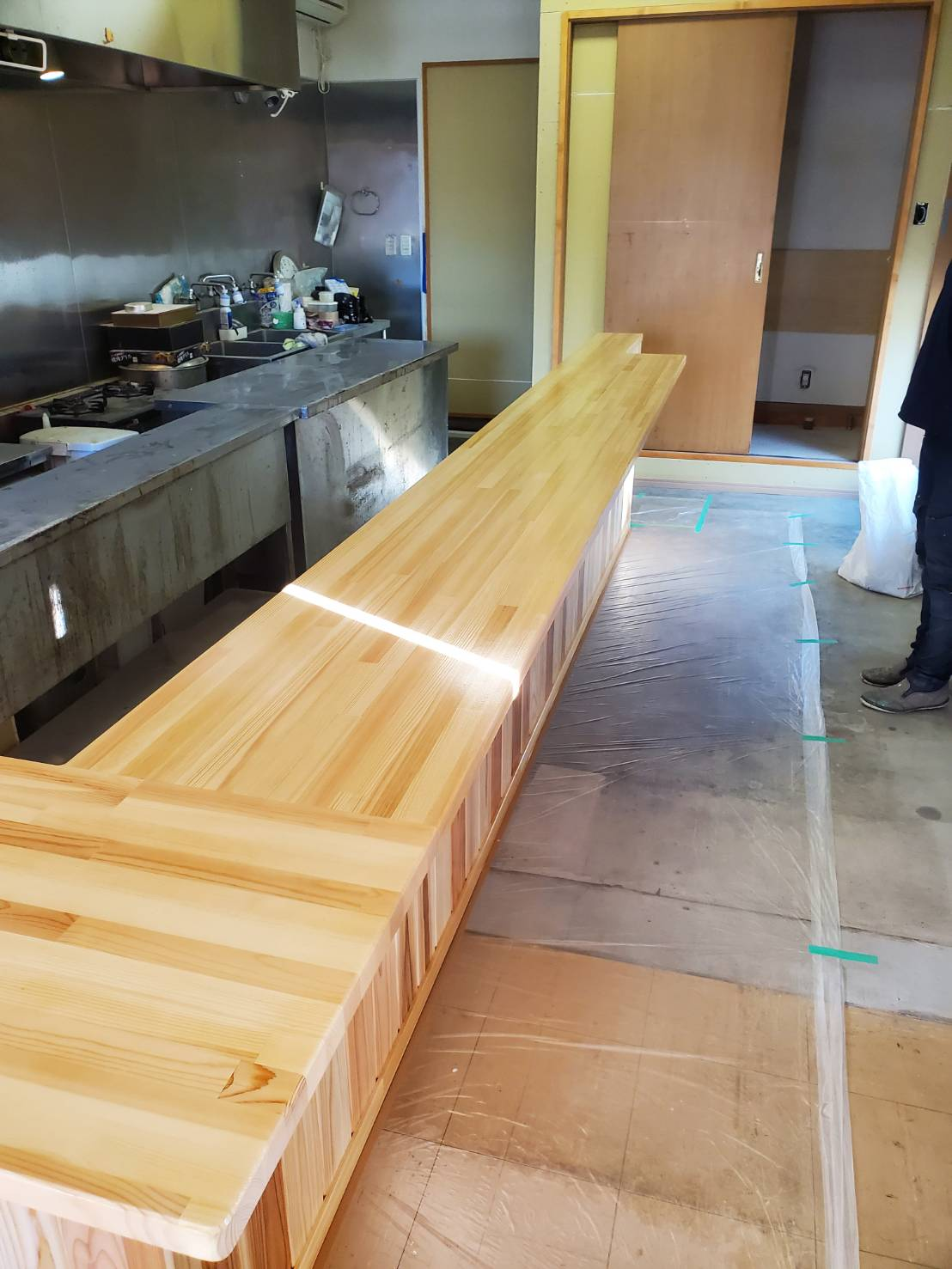 筑西市のF建設さまよりご依頼をいただき、飲食店内の木製カウンターを仕上げました。