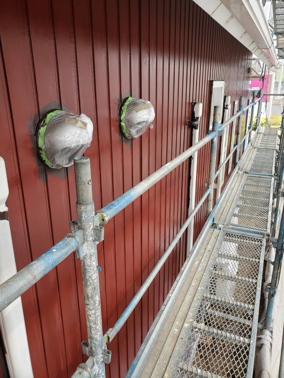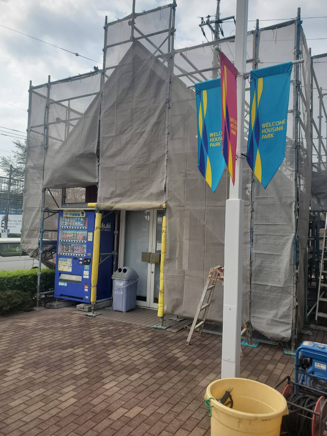 小山市のO展示場内のトイレ施設にて、外壁から屋根まで全面的な塗り替え工事を行いました。